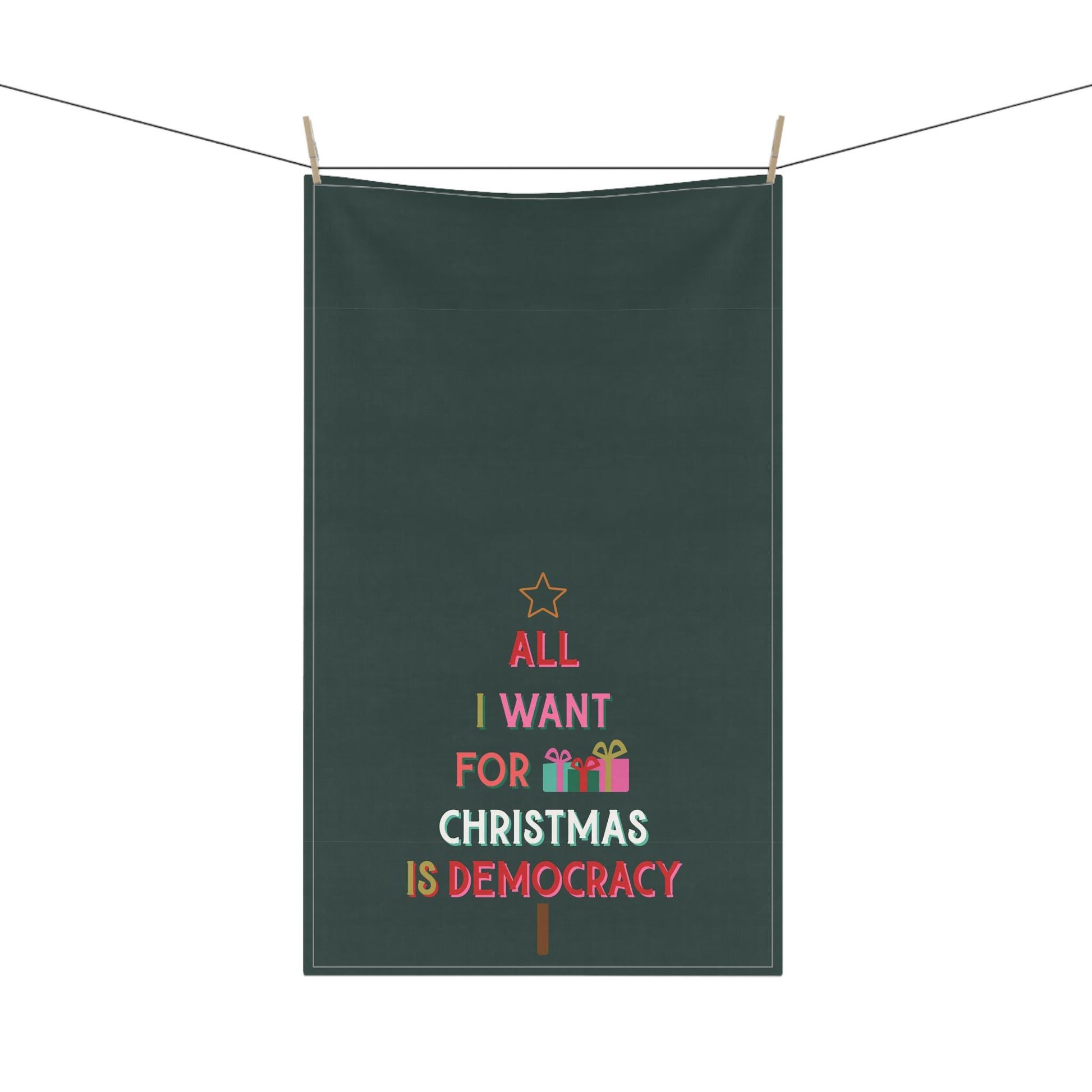 All I Want For Christmas Is Democracy Tea Towel | Holiday Political Kitchen Towel