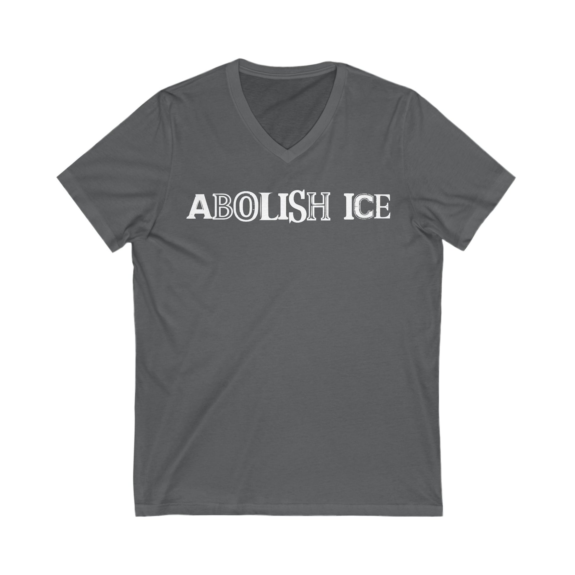 Raise your voice against illegal kidnappings and deportations with this "Abolish ICE" v-neck shirt. This eye-catching, high-quality political t-shirt. Made from soft, breathable fabric, this tee features a powerful slogan that speaks volumes about your beliefs and commitment to a better future. Perfect for rallies, casual wear, or showing solidarity with like-minded individuals, this shirt is more than just clothing – it's a conversation starter.