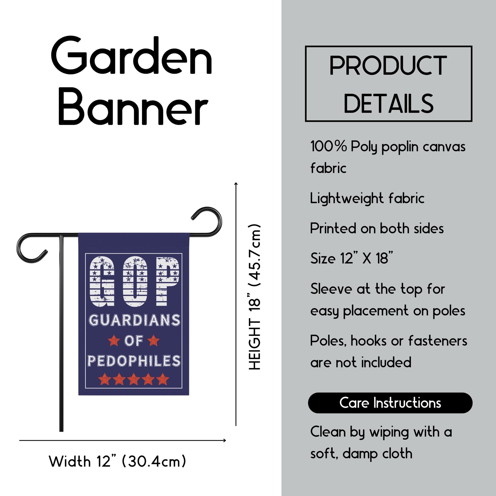 Features: .: 100% Poly poplin-canvas fabric .: Same design printed on both sides, flag flipped over long edge .: Black inside lining .: Features sleeve at top .: Pole, hooks, or fasteners are not included