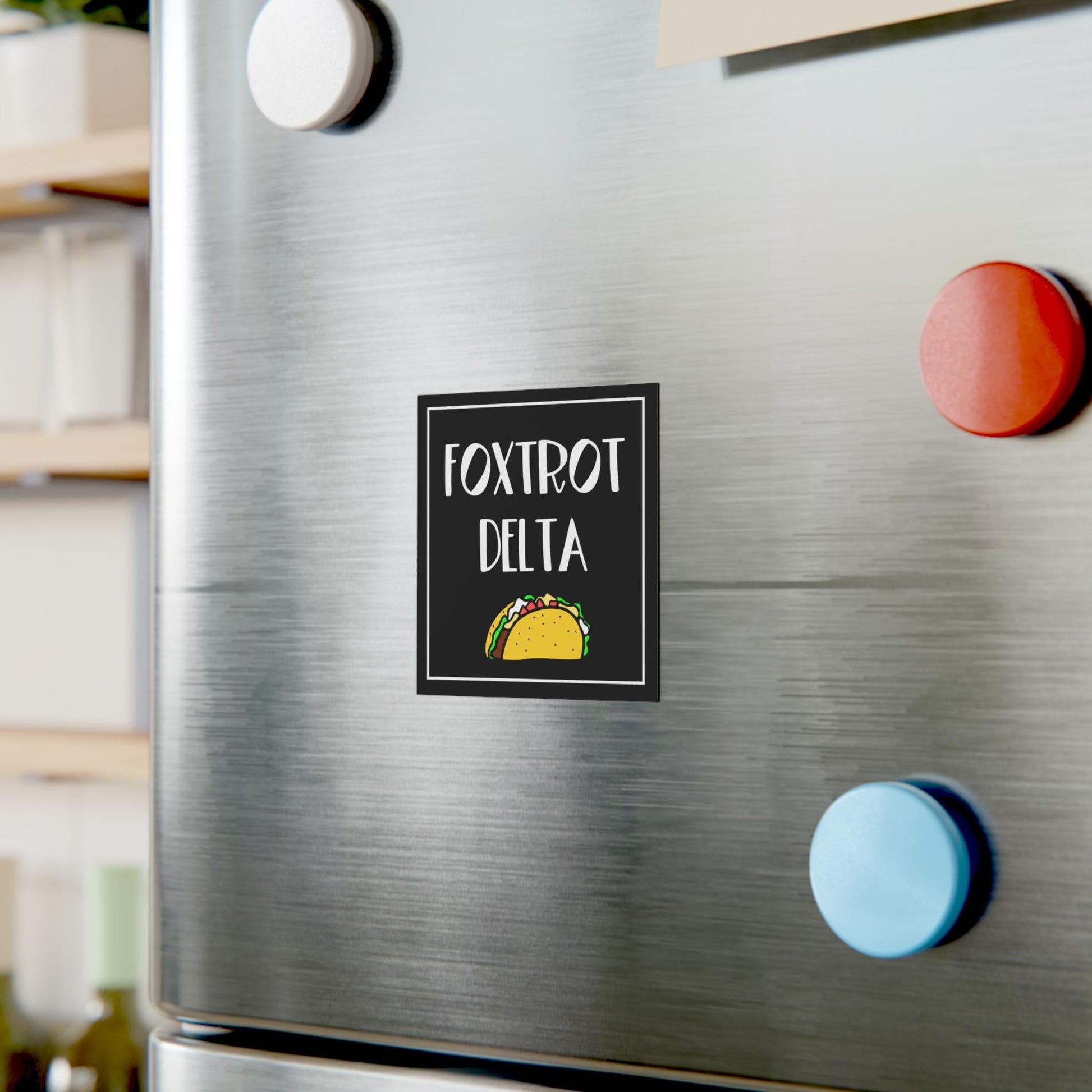This Foxtrot delta taco magnet is funny anti Trump merch and a not my president magnet that adds humor to resistance. It's the perfect anti MAGA gift, funny political magnet, 8647 merch, and f*ck ICE gift idea for bold activists.
