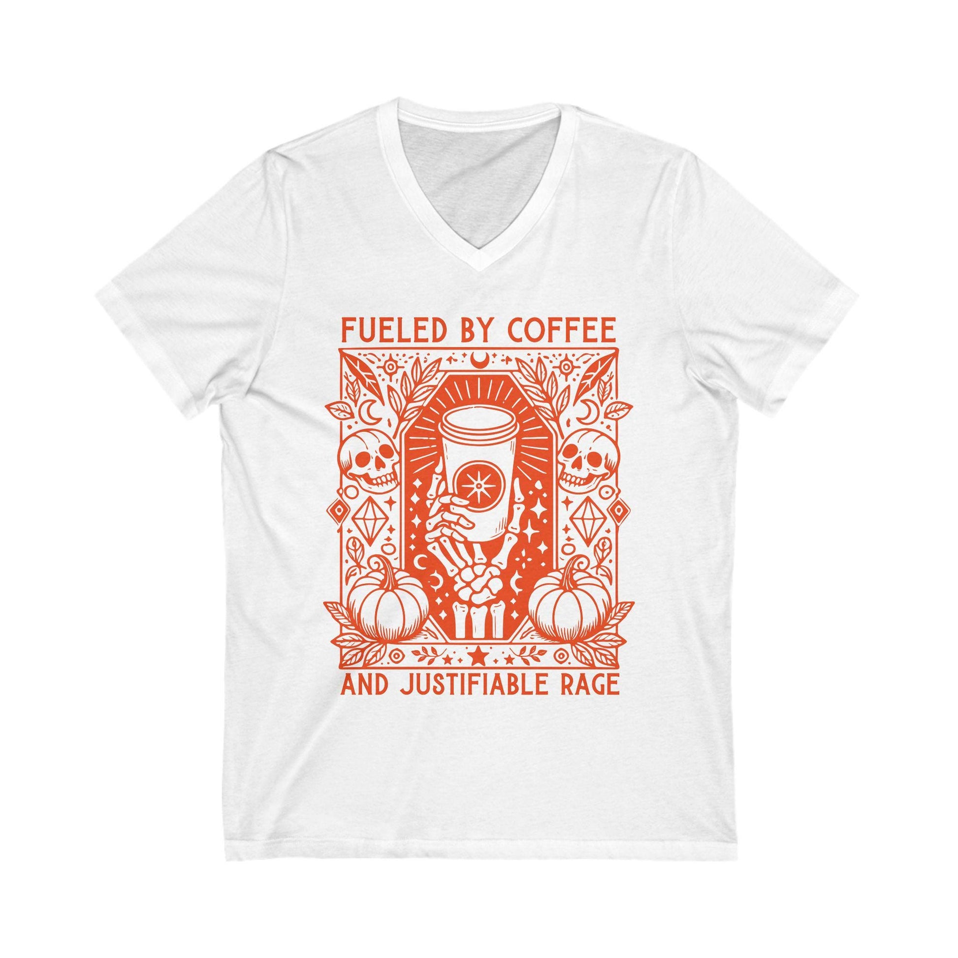 This "Fueled by Coffee and Justifiable Rage" Jersey Short Sleeve V-Neck Tee offers a fresh and vibrant vibe, perfect for showcasing your personality. The playful design incorporating cheerful colors and uplifting phrases makes it an ideal wardrobe addition for those who value self-expression. It's perfect for casual outings, birthday celebrations, or simply lounging at home. This tee resonates with young adults and activists alike, especially around election time or social awareness events. Wear it to vote, rally, or any occasion that celebrates freedom and civic engagement!