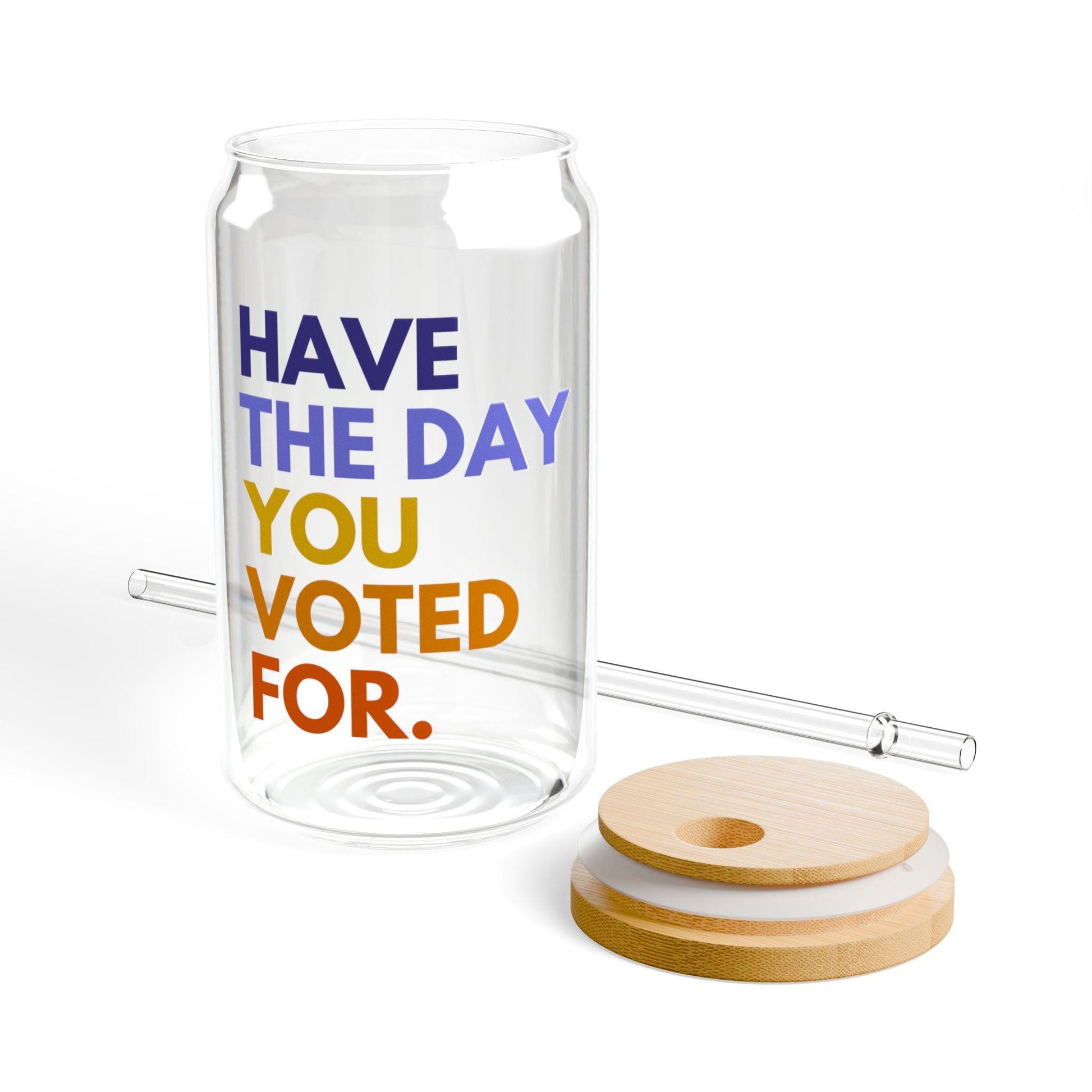 This "Have the Day You Voted For" 16 oz. reusable glass sipper is perfect for sending a clear message with a cute, sparkily cat to add some flare! Perfect for those who love to enjoy their beverages in style while giving fascism the middle finger. It's perfect for sipping iced teas, smoothies, or even warm drinks, giving you a refreshing feel every time you take a drink. This versatile glass fits effortlessly into your daily routine, making it a great companion for home, office, or even outdoor gatherings. Ideal for eco-conscious individuals and lovers of chic, modern designs, it's a fantastic gift for birthdays, housewarmings, or just because! Celebrate special moments like picnics and summer parties with this stylish and functional piece. Hand wash only for best care.