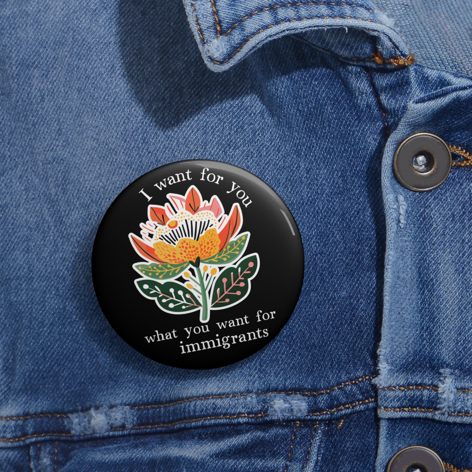 Speak out against ICE with this "I want for you what you want for immigrants" 2.25" pinback button! Perfect for any progressive, socialist, feminist or trans rights supporter. Wear it on jackets, backpacks, hats, and more, this high-quality glossy button is made with durable materials and a secure pin backing for long-lasting wear.