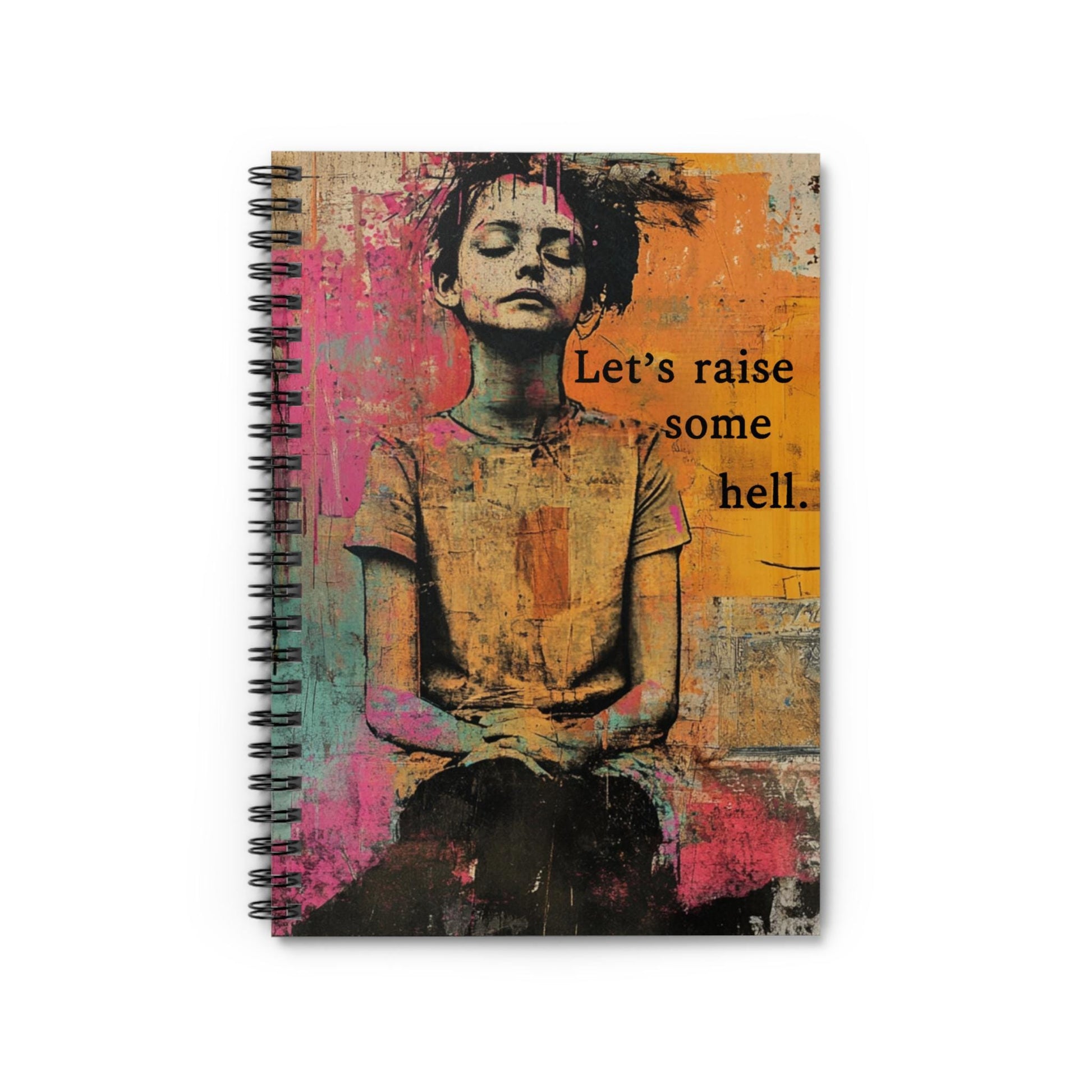 This Let's Raise Some Hell journal is the perfect journal for any feminist, LGBTQ+ rights activist, or Trump/fascism hater. Perfect for writers, students, or artists seeking a stylish companion for their thoughts, sketches, or notes. Its compact size makes it ideal for both home and on-the-go use, whether you're brainstorming ideas, journaling, or organizing your plans. Celebrate special occasions like birthdays, holidays, or any day you want to treat yourself or a loved one with a touch of playful elegance. This notebook is not just functional; it's a statement piece that adds personality to your stationery collection.