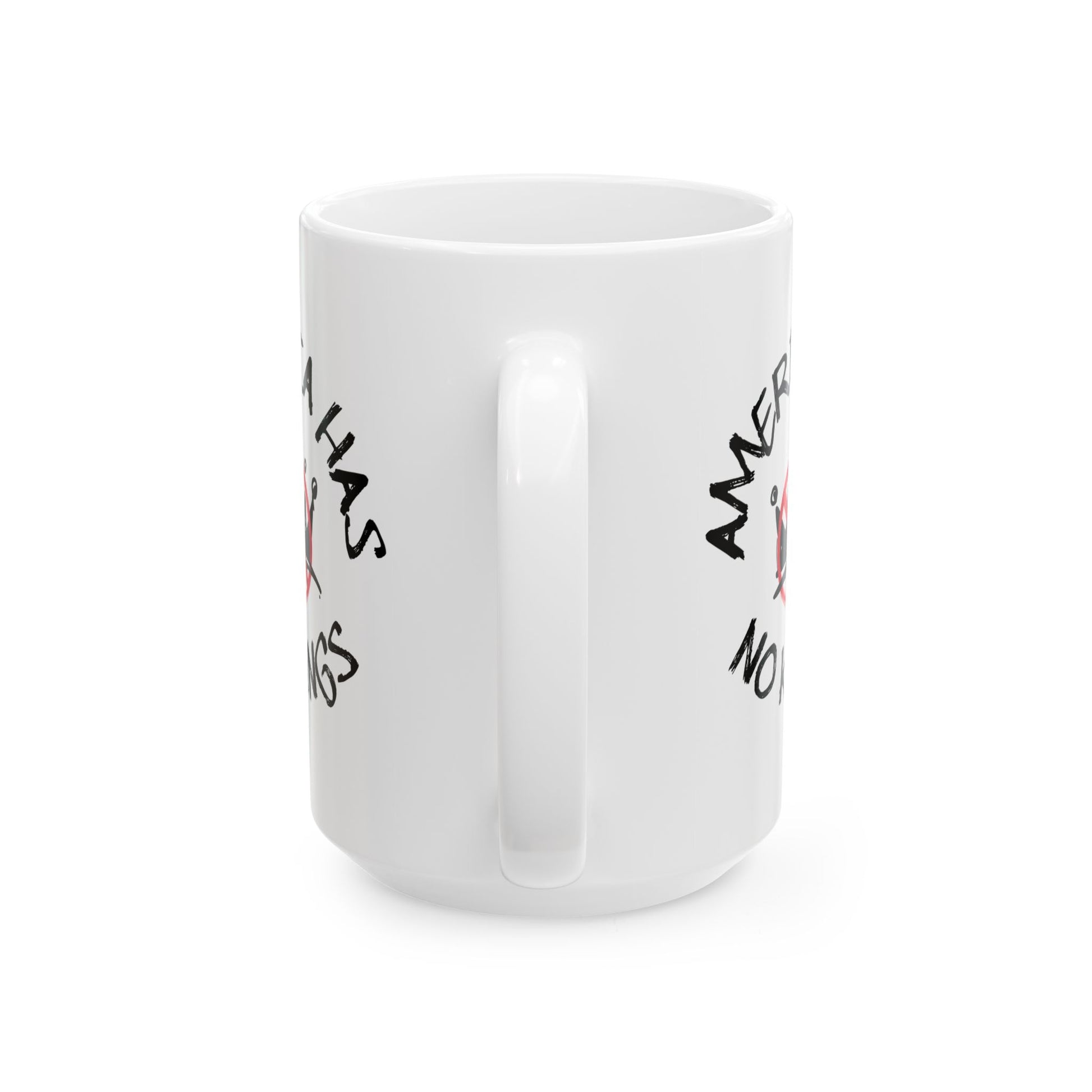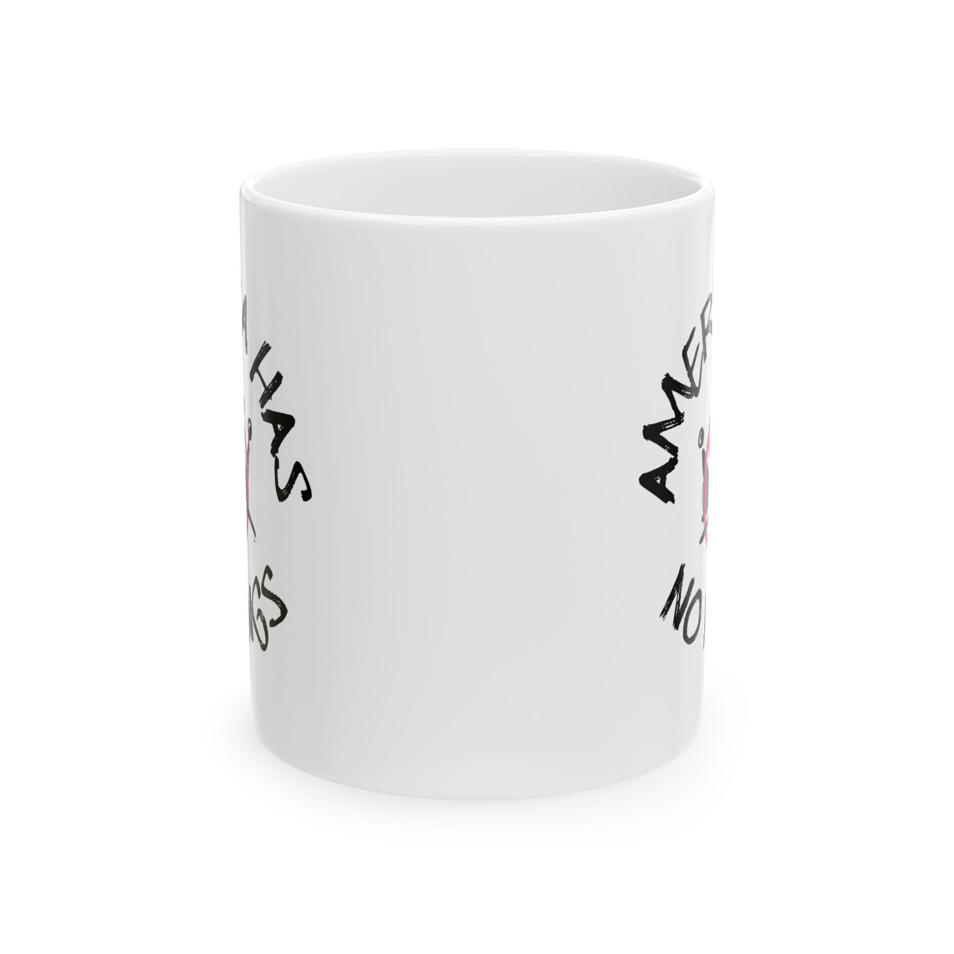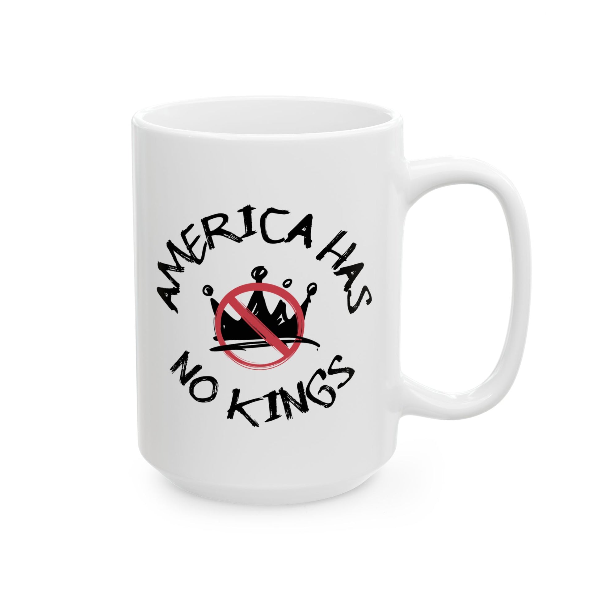 Enjoy coffee or tea while standing up for our democracy with this "America has no kings" ceramic mug. Available in two convenient sizes – 11 oz and 15 oz – this high-quality ceramic mug is perfect for enjoying your morning coffee, tea, or any hot beverage. Whether you're sipping at home, at work, or gifting to a loved one, this mug combines practicality and durability with a touch of personal flair.