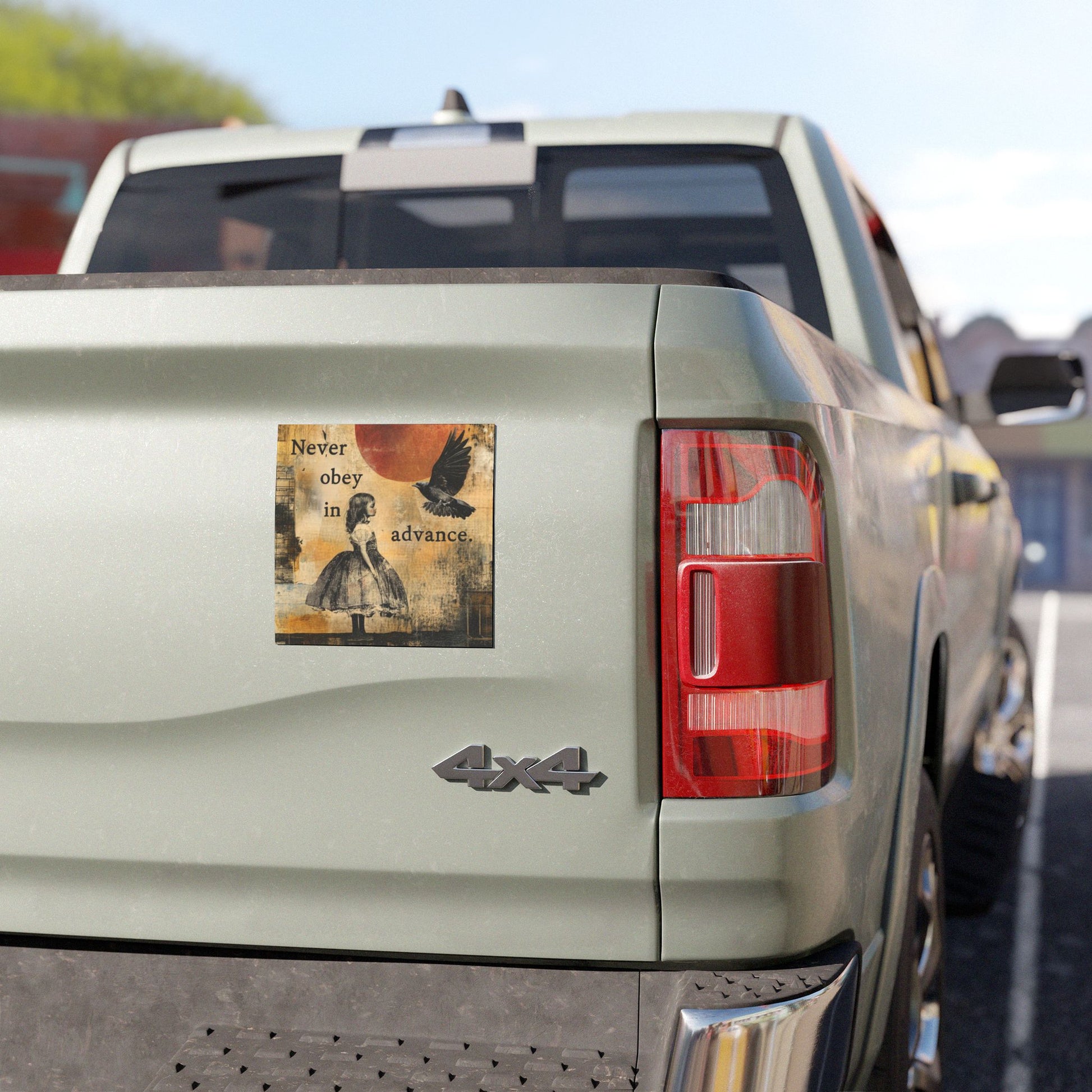 Never Obey In Advance Anti Fascism 5"x5" Car Magnet