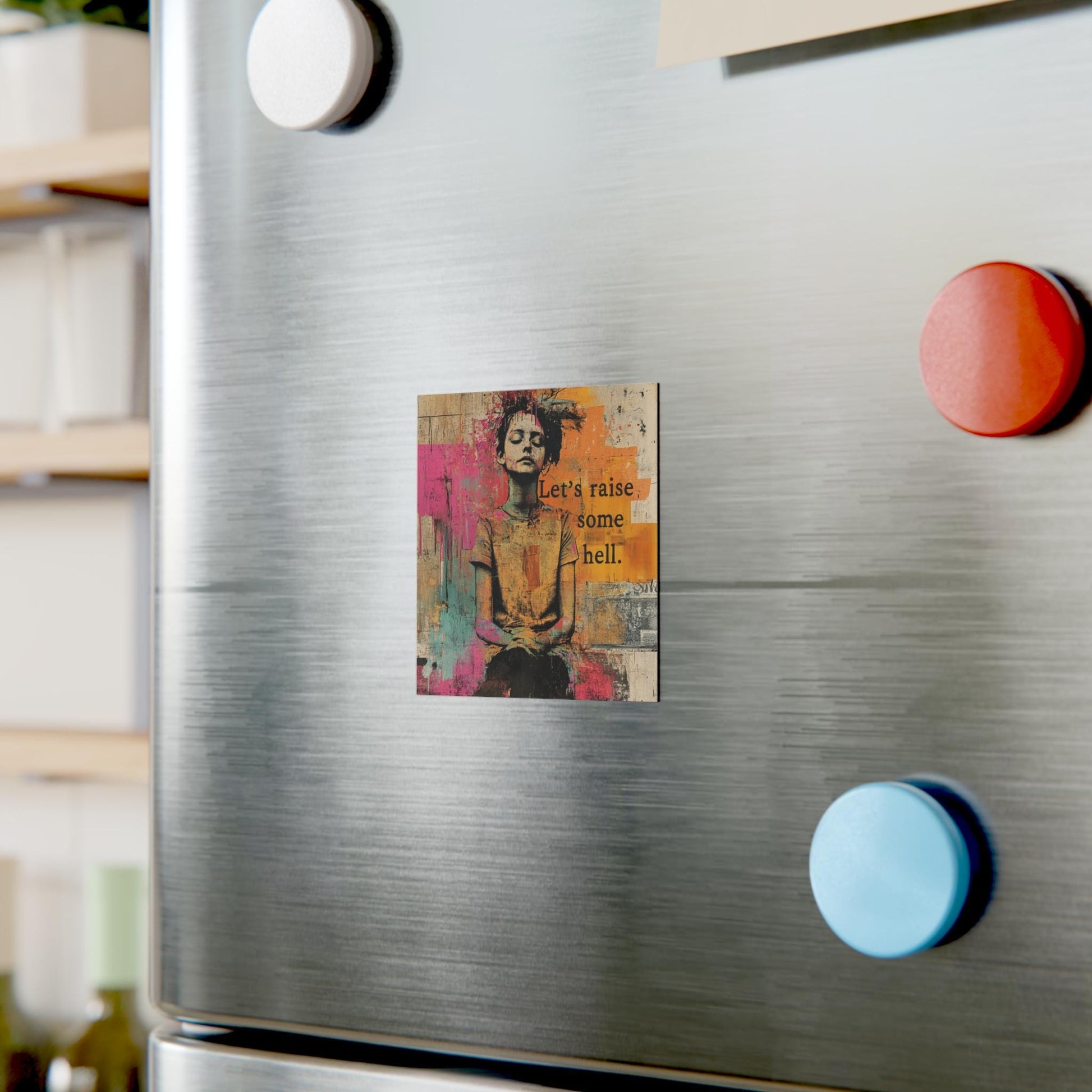 This Raise some hell magnet is a feminist gift idea and activist merch that empowers with every glance. It's the perfect anti Trump magnet, f*ck the patriarchy accessories, pro democracy magnet, and trans rights statement all in one.