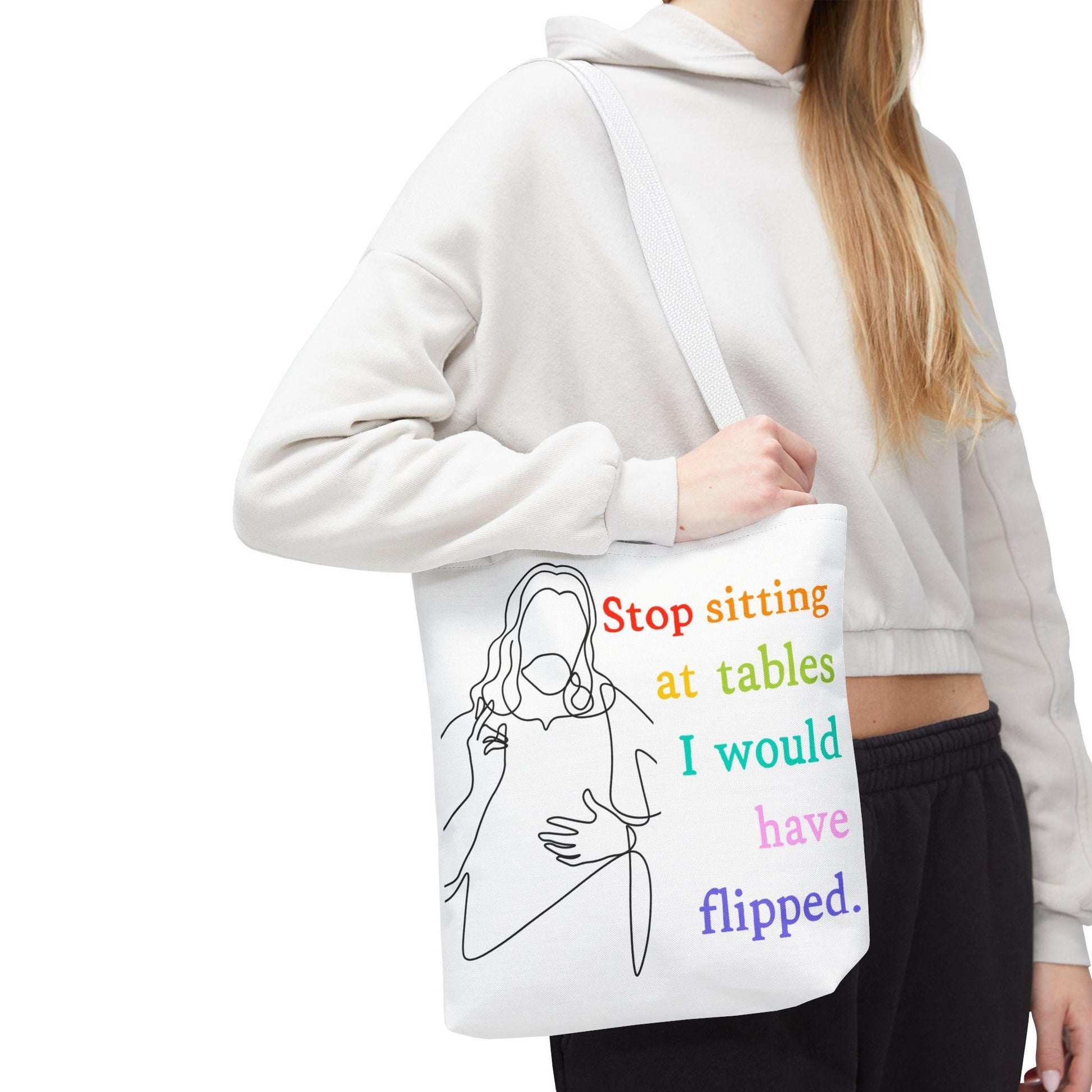 Stop sitting at tables I would have flipped tote bag Progessive liberal Christian gift lgbtq rights merch Anti-Trump Anti-Fascism tote