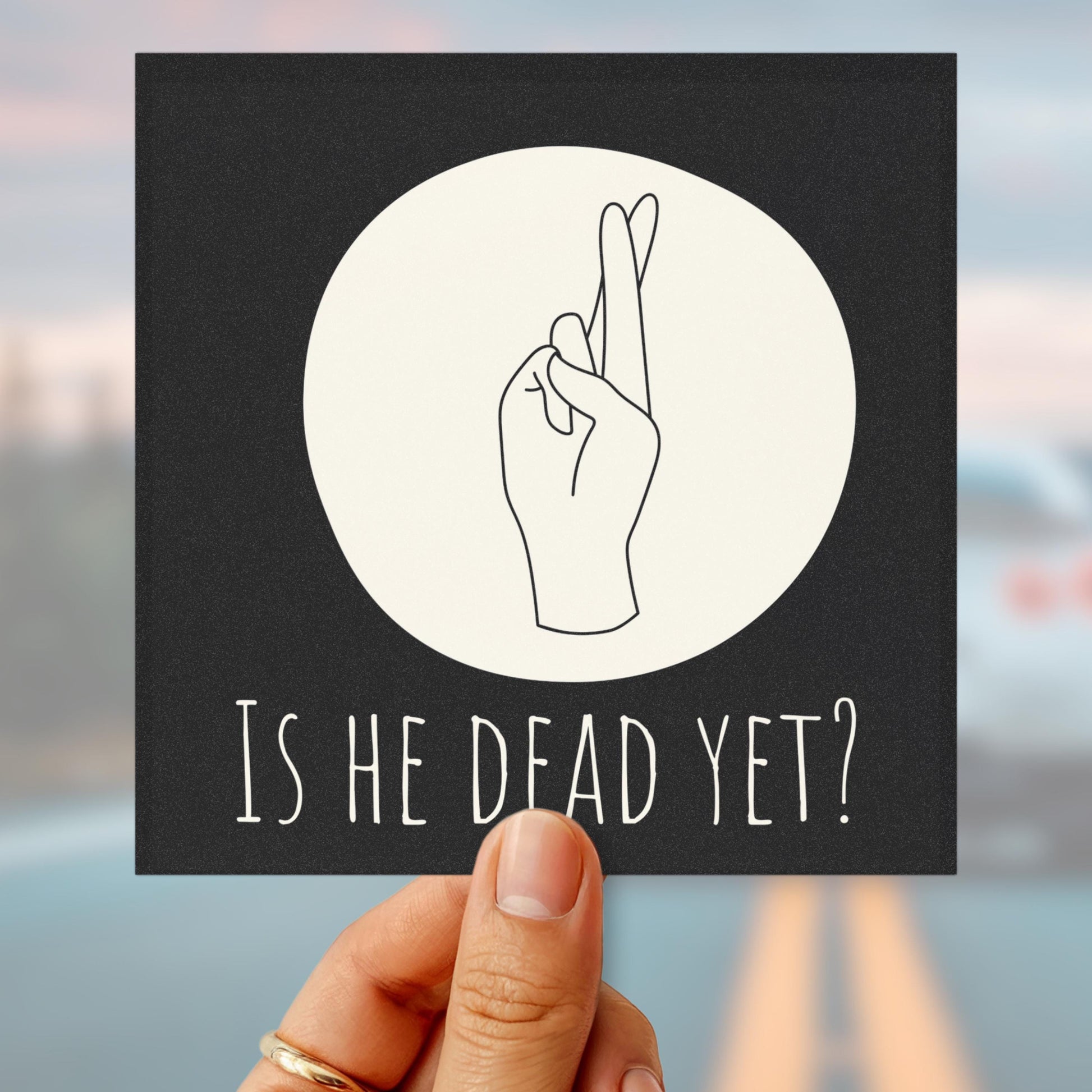 Enhance your vehicle with this subtle anti-Trump "Is he dead yet?" car magnet. This subtle f*ck trump bumper sticker is perfect for expressing your values or making a statement, and these magnets are the perfect pro democrat, feminist, anti-fascist protest statement piece. Ideal for activists, creative personalities, or anyone who loves to personalize their ride. They're not just for daily commutes; they're great for road trips, parades, and celebrations that call for a little extra fun! These magnets fit beautifully into life during holidays like Earth Day, Pride Month, or any occasion where you wish to stand out and make an impact.