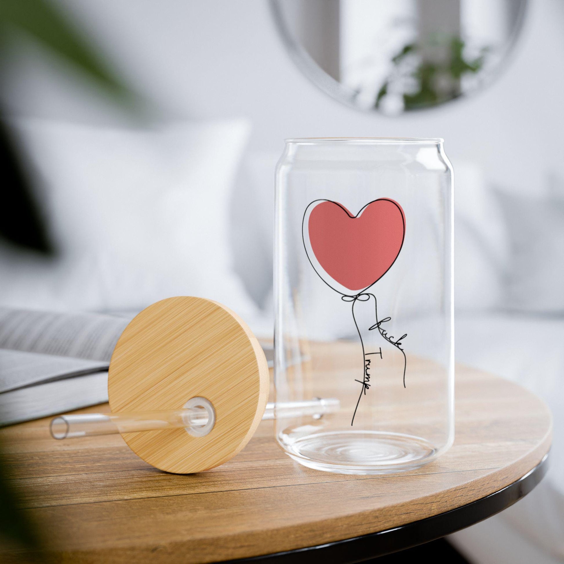 This subtle F*ck Trump" 16 oz. reusable glass sipper is perfect for sending a subtle f*ck you to Trump and his supporters. Great gift for any spouse, parent, teacher, relative or friend that isn't a fan of the orange menace! It's perfect for sipping iced teas, smoothies, or even warm drinks, giving you a refreshing feel every time you take a drink. This versatile glass fits effortlessly into your daily routine, making it a great companion for home, office, or even outdoor gatherings. Ideal for eco-conscious individuals and lovers of chic, modern designs, it's a fantastic gift for birthdays, housewarmings, or just because! Celebrate special moments like picnics and summer parties with this stylish and functional piece. Hand wash only for best care.