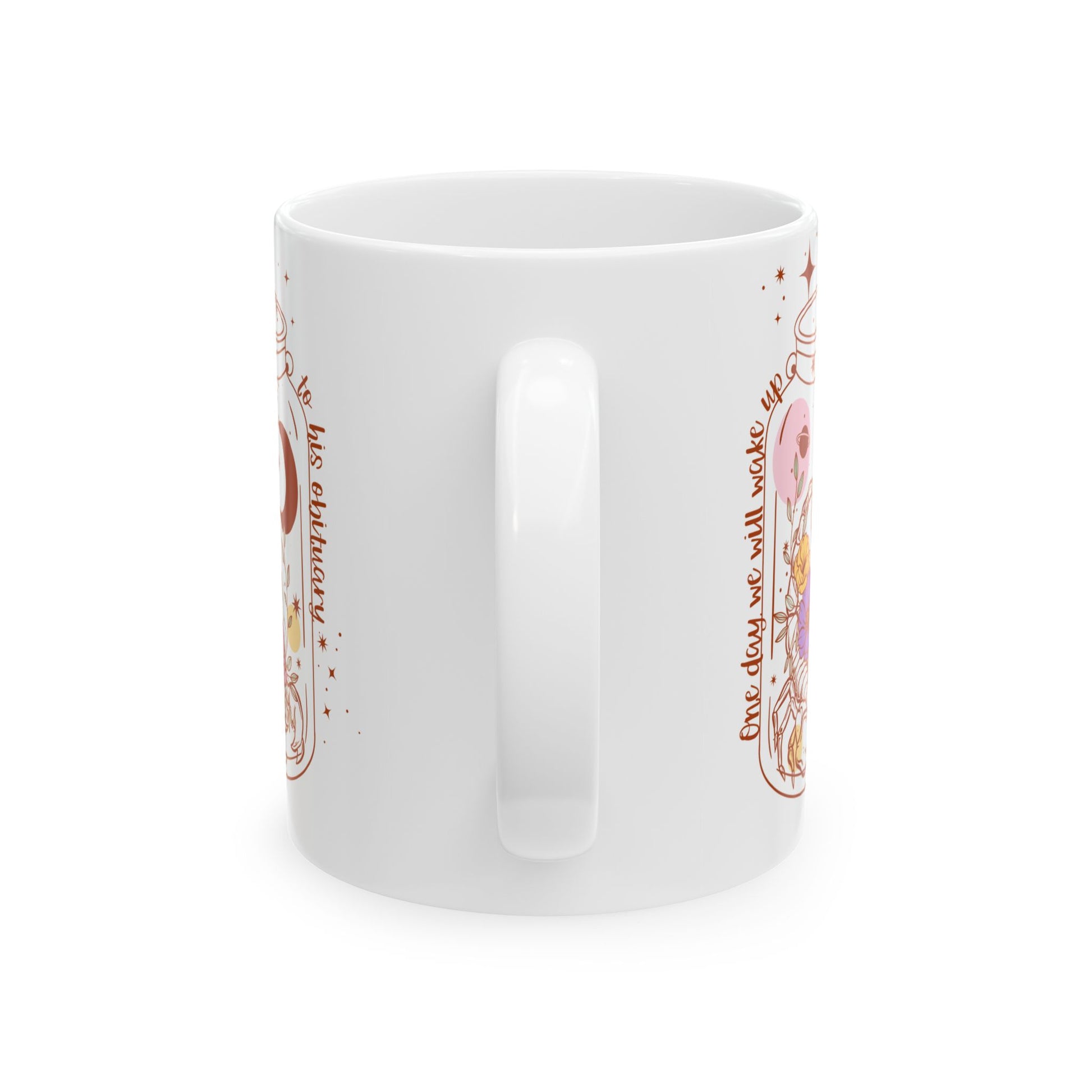Looking for a daily reminder that Trump won't be around forever? Sip and smile with this "One Day We Will Wake Up To His Obituary" ceramic mug. Available in two convenient sizes – 11 oz and 15 oz – this high-quality ceramic mug is perfect for enjoying your morning coffee, tea, or any hot beverage. Whether you're sipping at home, at work, or gifting to a loved one, this mug combines practicality and durability with a touch of personal flair.