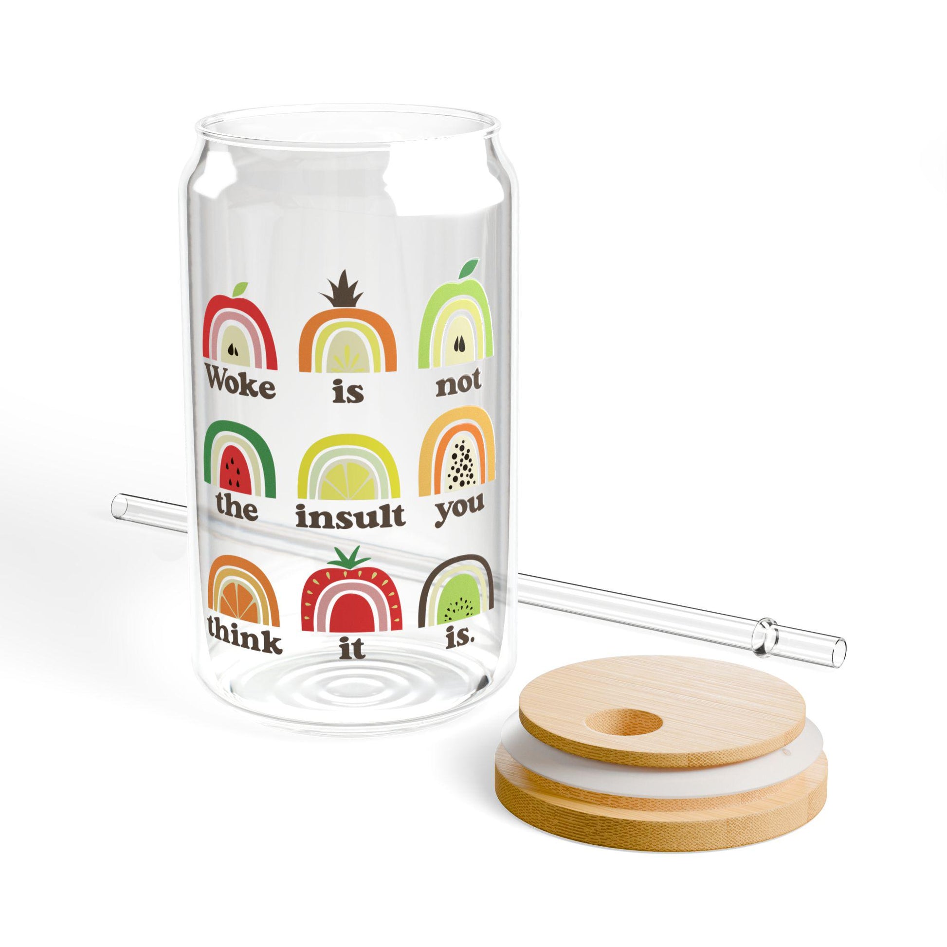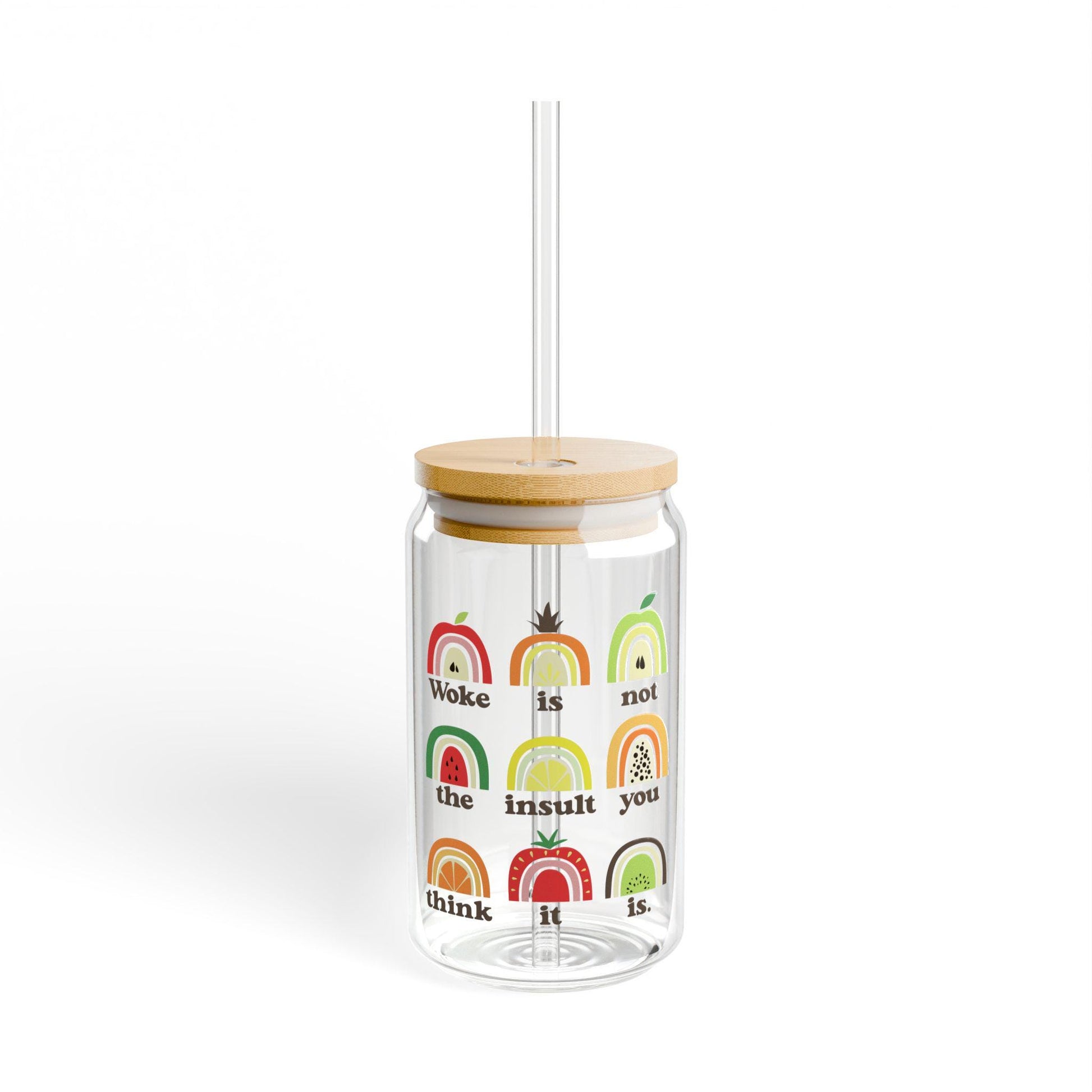 This "Woke is not the insult you think it is" 16 oz. reusable glass sipper is perfect for those who love to enjoy their beverages in style while giving the attempted fascist takeover of our government the middle finger. It's perfect for sipping iced teas, smoothies, or even warm drinks, giving you a refreshing feel every time you take a drink. This versatile glass fits effortlessly into your daily routine, making it a great companion for home, office, or even outdoor gatherings. Ideal for eco-conscious individuals and lovers of chic, modern designs, it's a fantastic gift for birthdays, housewarmings, or just because! Celebrate special moments like picnics and summer parties with this stylish and functional piece. Hand wash only for best care.